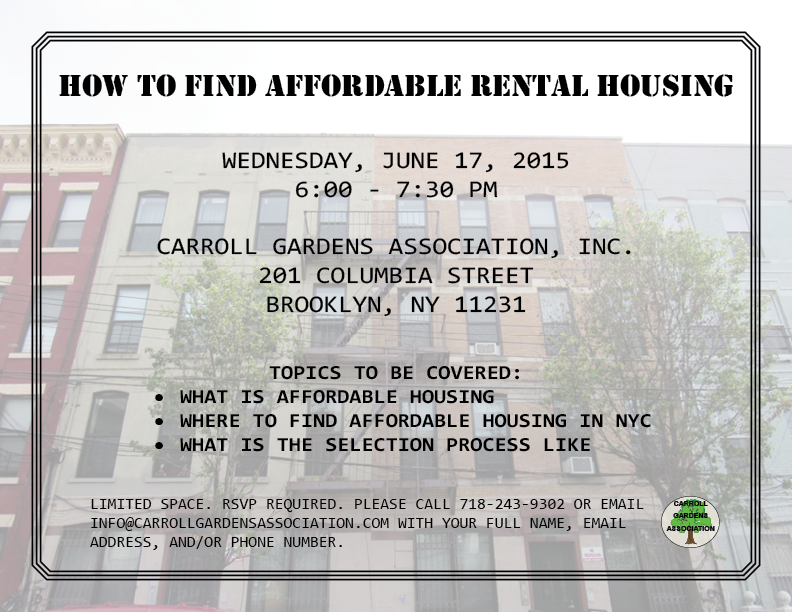 Please RSVP by calling (718)243-9301 or emailing info@carrollgardensassociation.com with your full name, phone number, and email address.