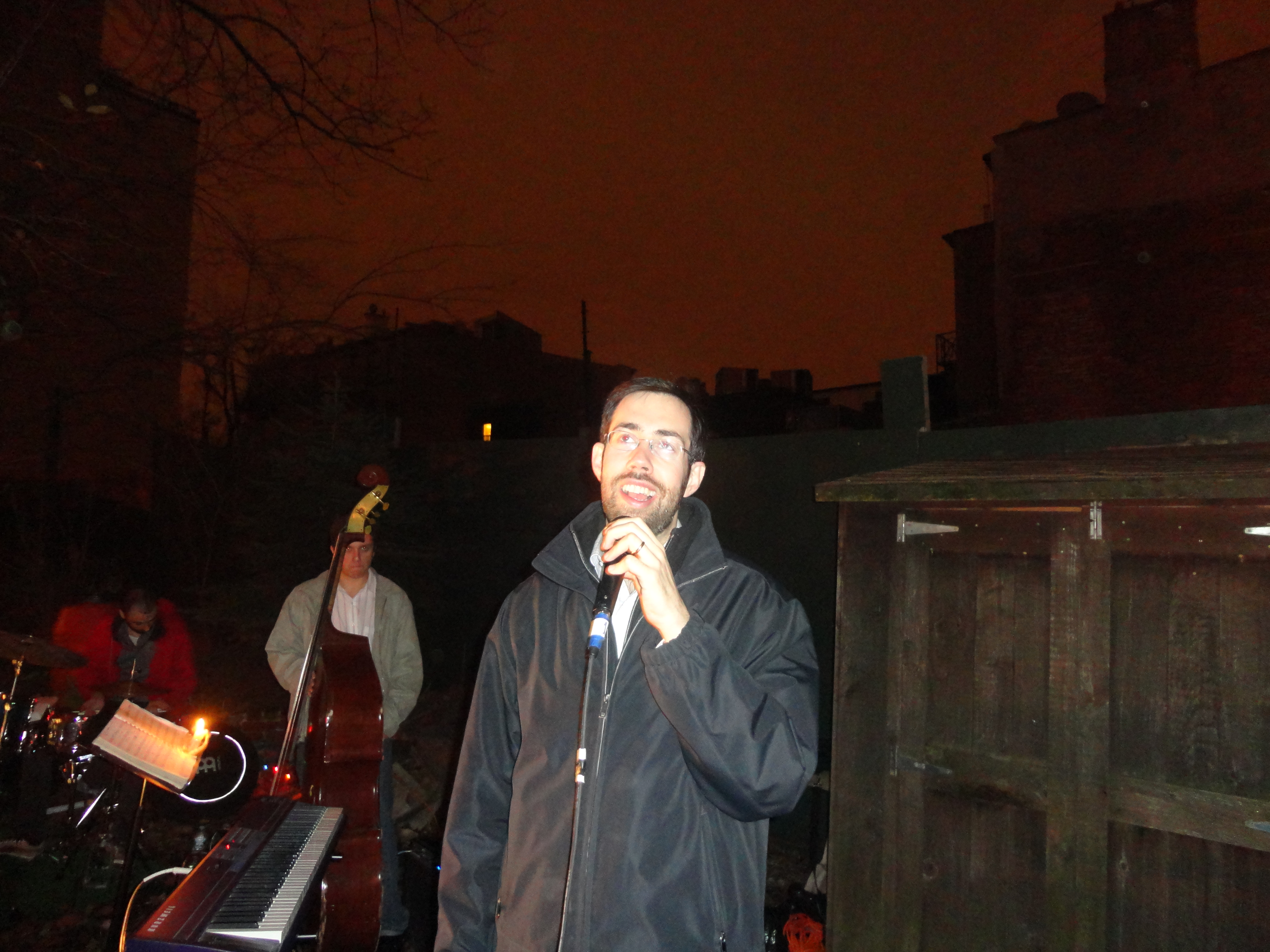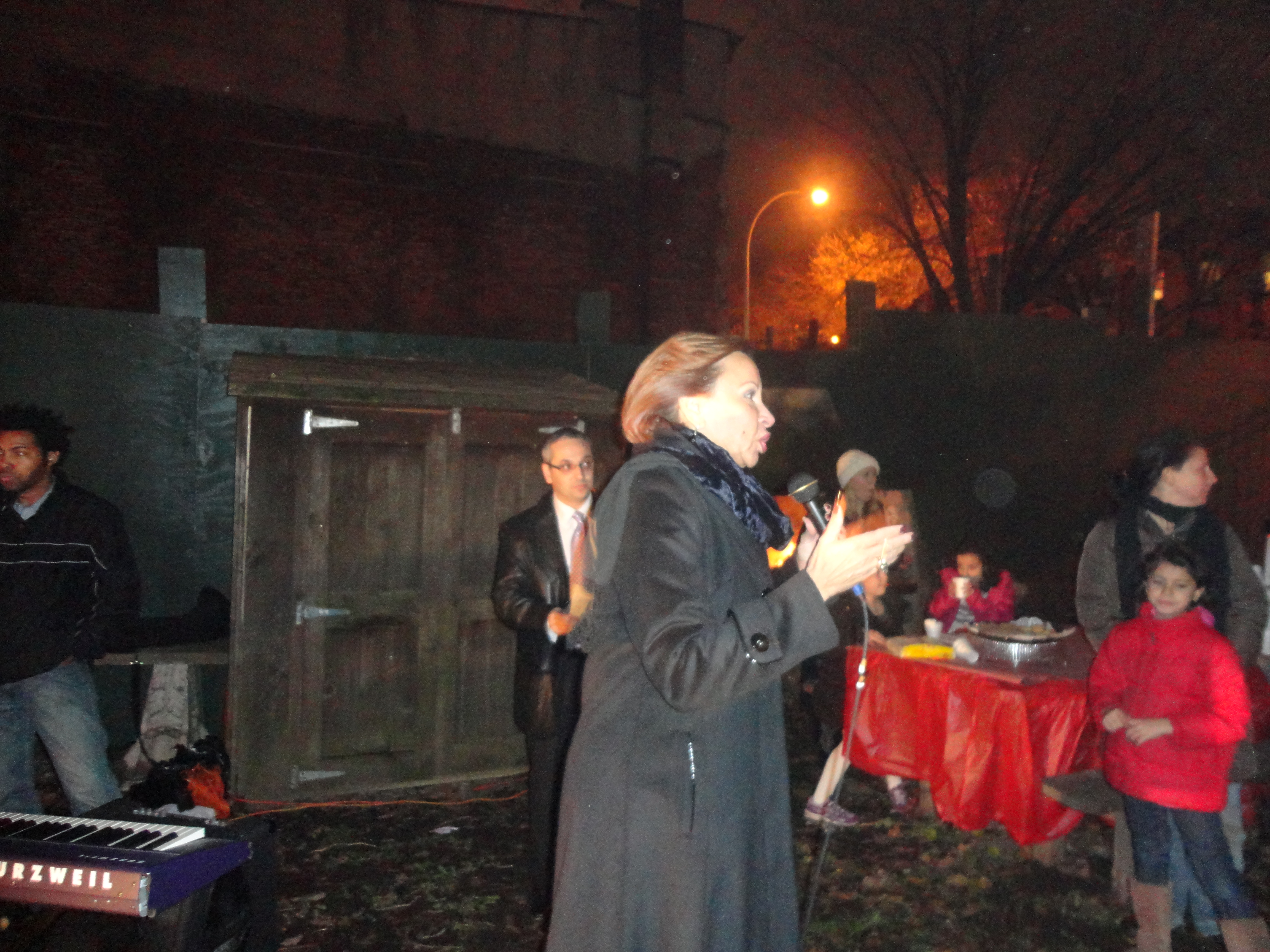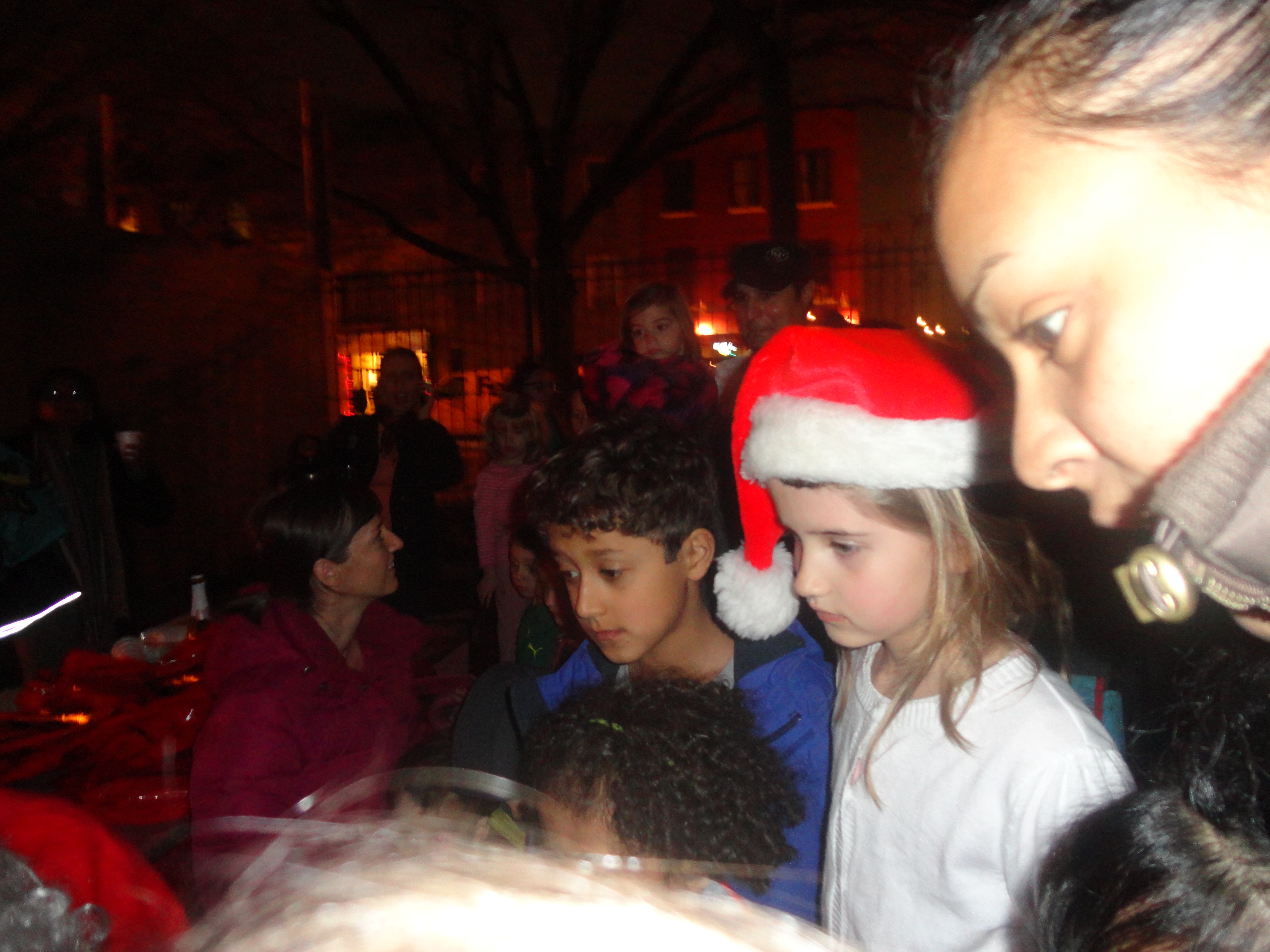 Over 200 people gathered to celebrate the Holiday Season at the 5th Annual Columbia Waterfront Tree Lighting Ceremony held at the Human Compass Garden on December 9th, 2011. This year’s tree lighting ceremony was jointly sponsored by Carroll Gardens Association, Inc., the Columbia Waterfront District Merchants Association, Apple Bank, the Red Hook Star-Revue, and the House of Pizza & Calzone. Congresswoman Nydia Velasquez and State Senator Daniel Squadron gave their holiday greetings and urged community residents to patronize local businesses. Representatives from other elected officials were also present during the event. More than 100 children waited anxiously for Santa to arrive, while the Less Magnetic Band entertained the crowd with their Holiday Jazz repertoire. After some delay, Santa finally made his appearance in a fire truck, welcomed by the adulation of screaming little voices. The evening was capped with Santa and his helpers handing out toys to happy little youngsters.