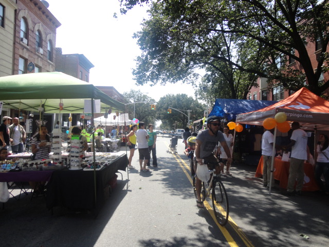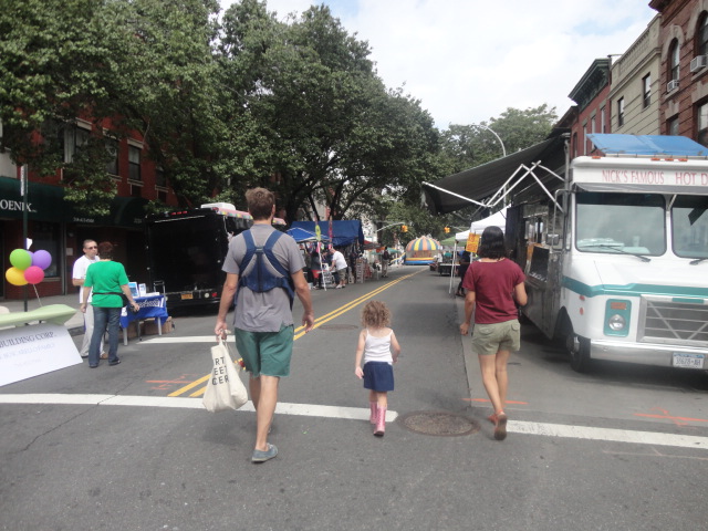Despite the threats of heavy rain and two tornadoes, the afternoon of September 8th, 2012 was perfect weather for holding the 2012 Annual Columbia Waterfront Fall Festival. Families with children and various members of the community came out after the weather has cleared. Everyone enjoyed an afternoon of food from various local restaurants and vendors, shopping from merchants and local stores, and listening to jazz music from the Columbia Waterfront Quartet and blues from the Union Band. Kids had fun with the rides and the free tennis lessons from the South Brooklyn Tennis Association. Downstate Long Island College Hospital provided free health screenings to the general public during the event. Our elected officials, State Senator Daniel Squadron, Assemblywoman Joan Millman, and Council Member Brad Lander showed support for the event and greeted the community. The 4th Annual Columbia Waterfront Fall Festival was hosted by Carroll Gardens Association, Inc. in partnership with the Columbia Waterfront District Merchants Association. This year’s sponsors included Apple Bank, Ascot Properties NYC, Jabus Building Corporation, TD Bank, Downstate Long Island College Hospital and Carpingo. Donors included Ramon Cartasano of Cartasano J. Brown LLC, Mr. Boris Baranov of Prudential Life Insurance, Mr. Paul DiAgostino of the House of Pizza and Calzone, and the Red Hook Star-Revue.